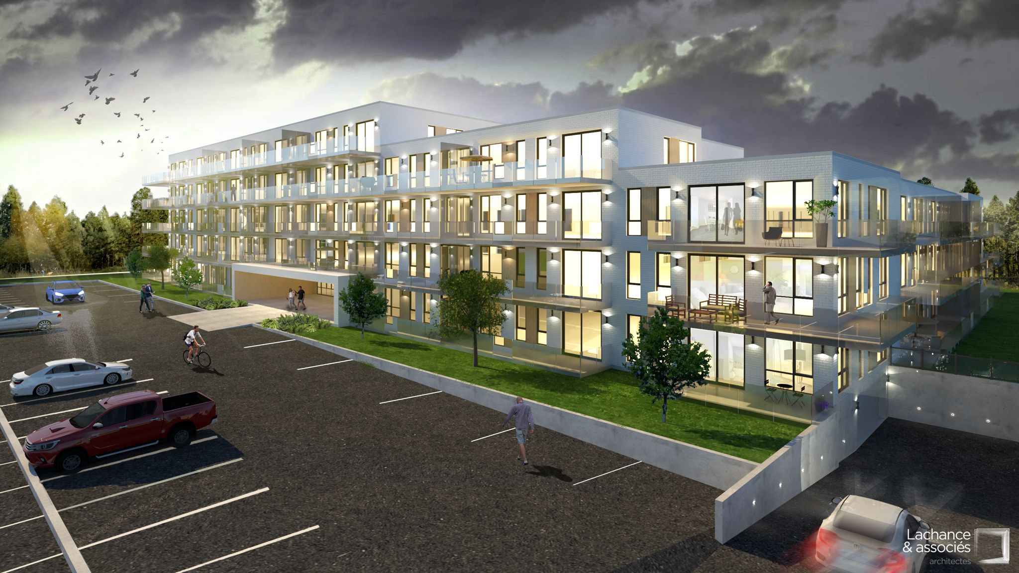 The first step of Le Barthélemy is to build two multiresidential structures including one with 39 locative units distributed on 3 floors and the other of 65 units spread over 2 floors for a total of 104 locative condominiums. At all times, it will be possible for the residents to benefit of green spaces, a private yard and a library. It will be easy for them to have access to daycare services, financial, medical and pharmaceutical services thanks to a commercial building.